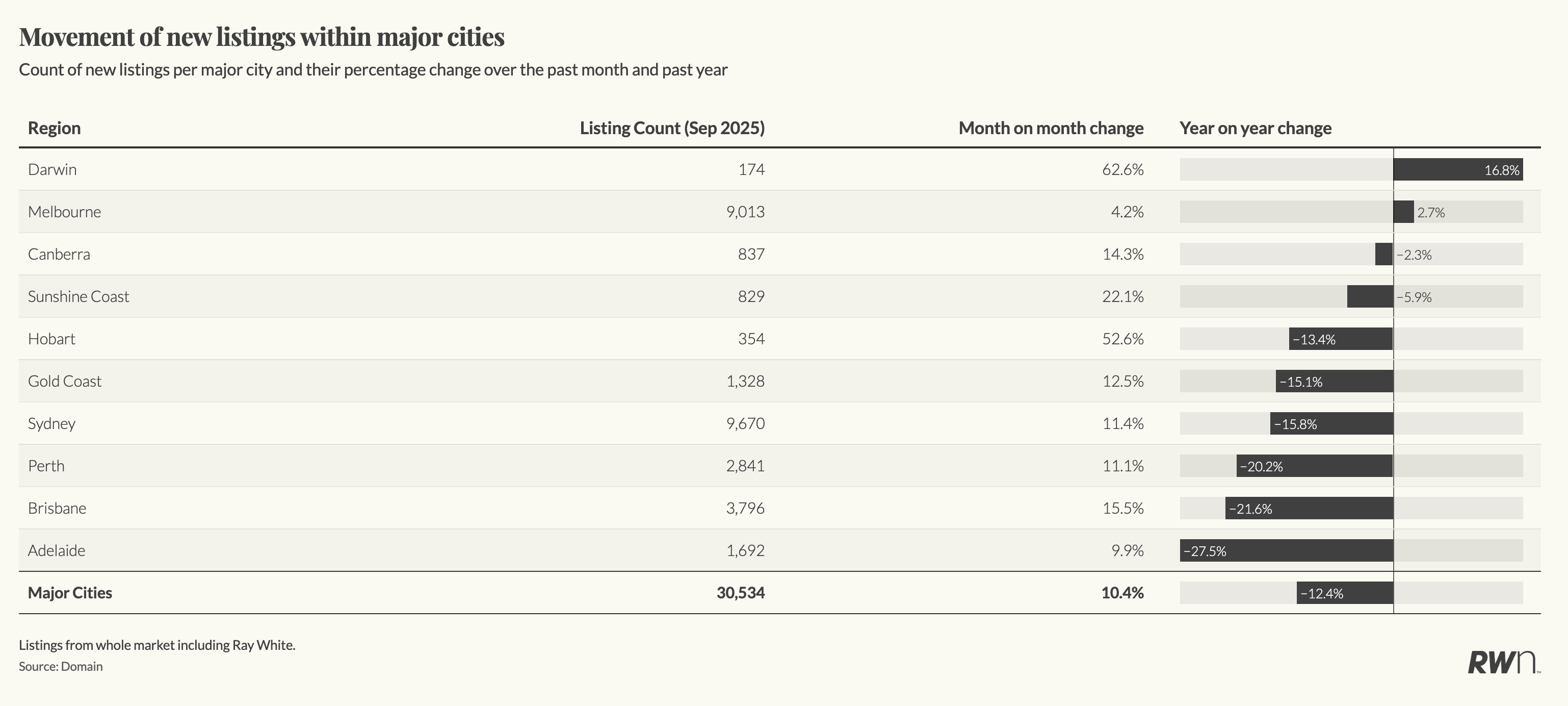 The lift in new listings confirms that sentiment is improving. Listings data across all agencies show Darwin listings up 62.6 per cent month-on-month and 16.8 per cent year-on-year, while Melbourne listings rose 4.2 per cent over the month. Rising supply in strengthening markets typically signals confidence rather than weakness, as vendors take advantage of firmer prices and faster sales.